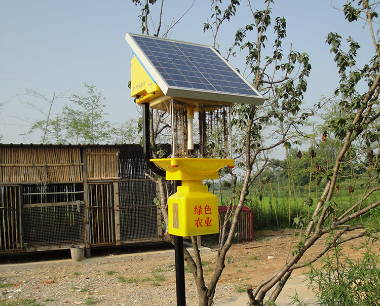 3、使用:在夜晚或阴雨天,杀虫灯会自动亮起,利用紫外线吸引害虫。当害虫接触到杀虫灯附近的高压电网时,会被电击致死。同时,杀虫灯还会产生一定的风力,将害虫吸入收集盒内。